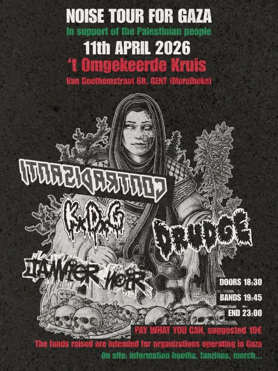 By mobilising the underground punk, grind, noise and death music scene, this tour aims to talk about the ongoing genocide in Gaza and the attack of October 7, 2023.