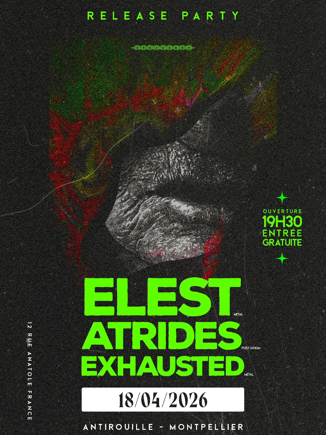 🩸Release party commune le 18 avril 2026 à l'@antirouillemtp avec @elest_noise, et avec @exhausted_postmetal qui nous rejoint.